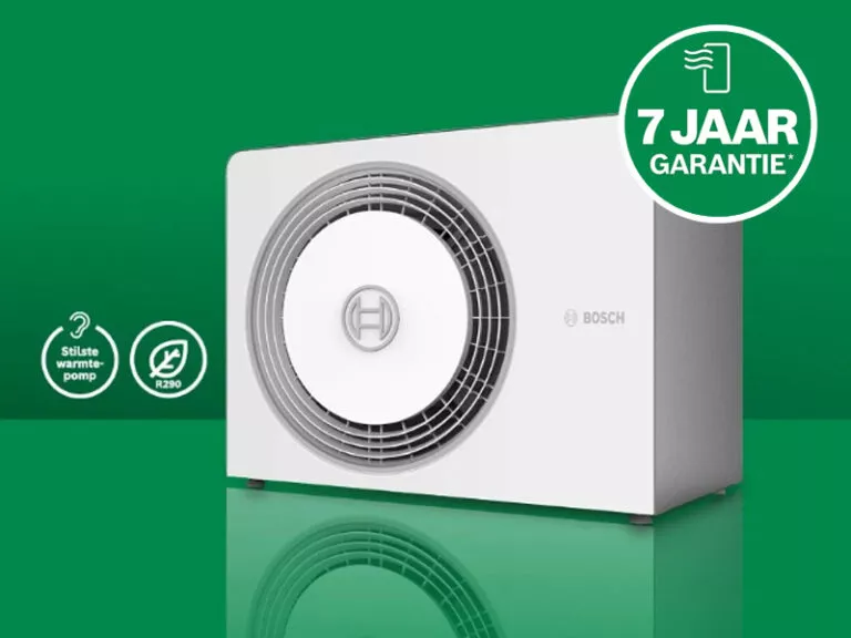 Dat is nog eens een goed extra verkoopargument: een garantie van maar liefst 7 jaar op een superstille Bosch Compress 5800i AW warmtepomp.