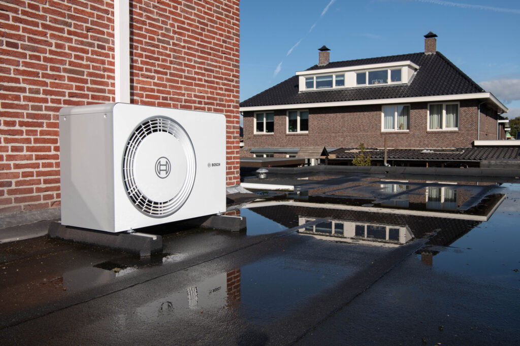 Plaatsingstip Bosch Compress 5800i AW van Jurgen: “De Bosch Compress 5800i AW Hybrid draait op het natuurlijke koudemiddel propaan (R290). Daarom moet je goed nadenken over de plek waar je het buitendeel plaatst. Het buitendeel mag bijvoorbeeld niet binnen een meter van ramen en deuren staan.”