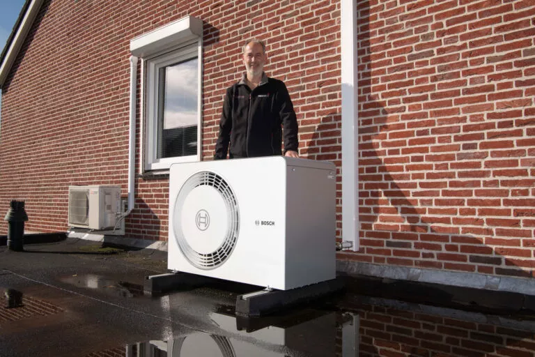 De eerste keer kreeg Jurgen hulp van een Nefit Bosch monteur bij het installeren en de inbedrijfstelling van de Bosch Compress 5800i AW. Jurgen: “Nu komt die monteur alleen langs voor ‘de check’, waardoor de klant vijf jaar extra onderdelengarantie bovenop de bestaande garantie van twee jaar krijgt. Binnenkort gaan we op training bij Nefit Bosch, zodat we ook deze check zelf kunnen uitvoeren en we de klant niet met nog een bezoek van een monteur hoeven te storen.”